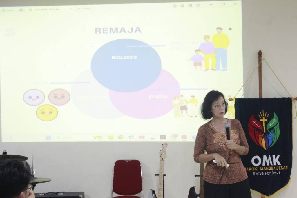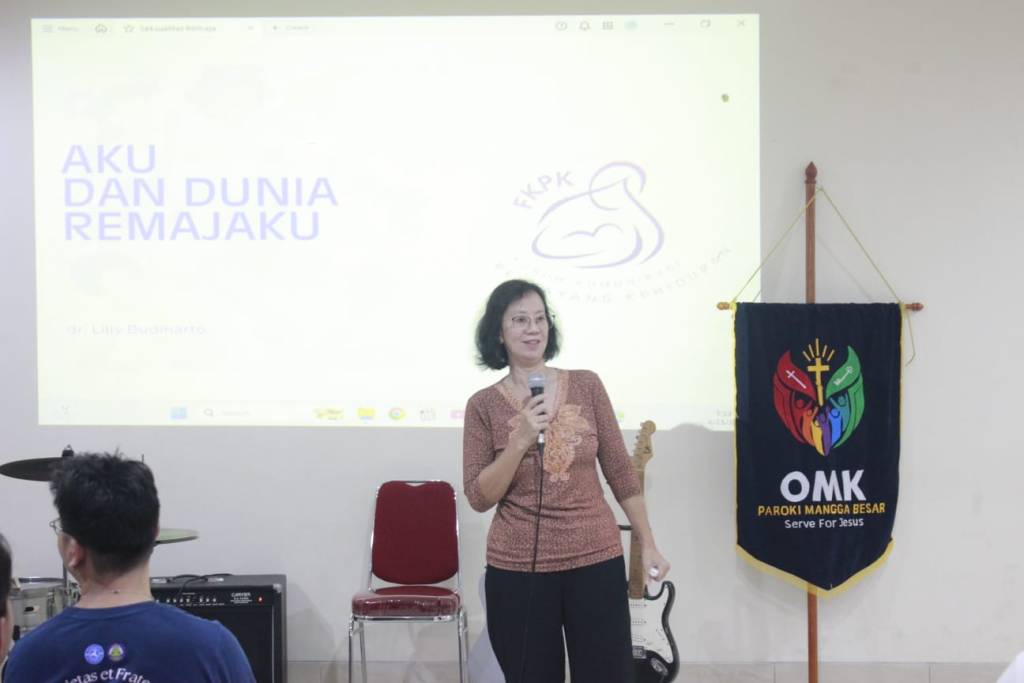 Kegiatan tersebut menghadirkan dr. Lilly Budiharto sebagai pemateri yang membahas dinamika relasi dan pemahaman seksualitas dalam kehidupan kaum muda dalam terang nilai-nilai Kristiani.