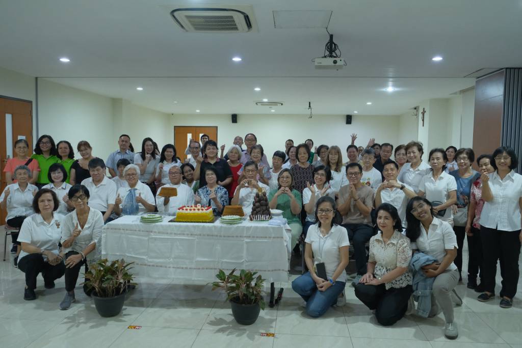 Foto bersama usai Misa HUT ke-19 Meditasi Kristiani Mangga Besar di Ruang Fransiskus–Ignatius, Gedung Karya Pastoral (GKP) Petrus, Gereja St. Petrus dan Paulus Mangga Besar, Sabtu (25/4/2026). foto: Niel